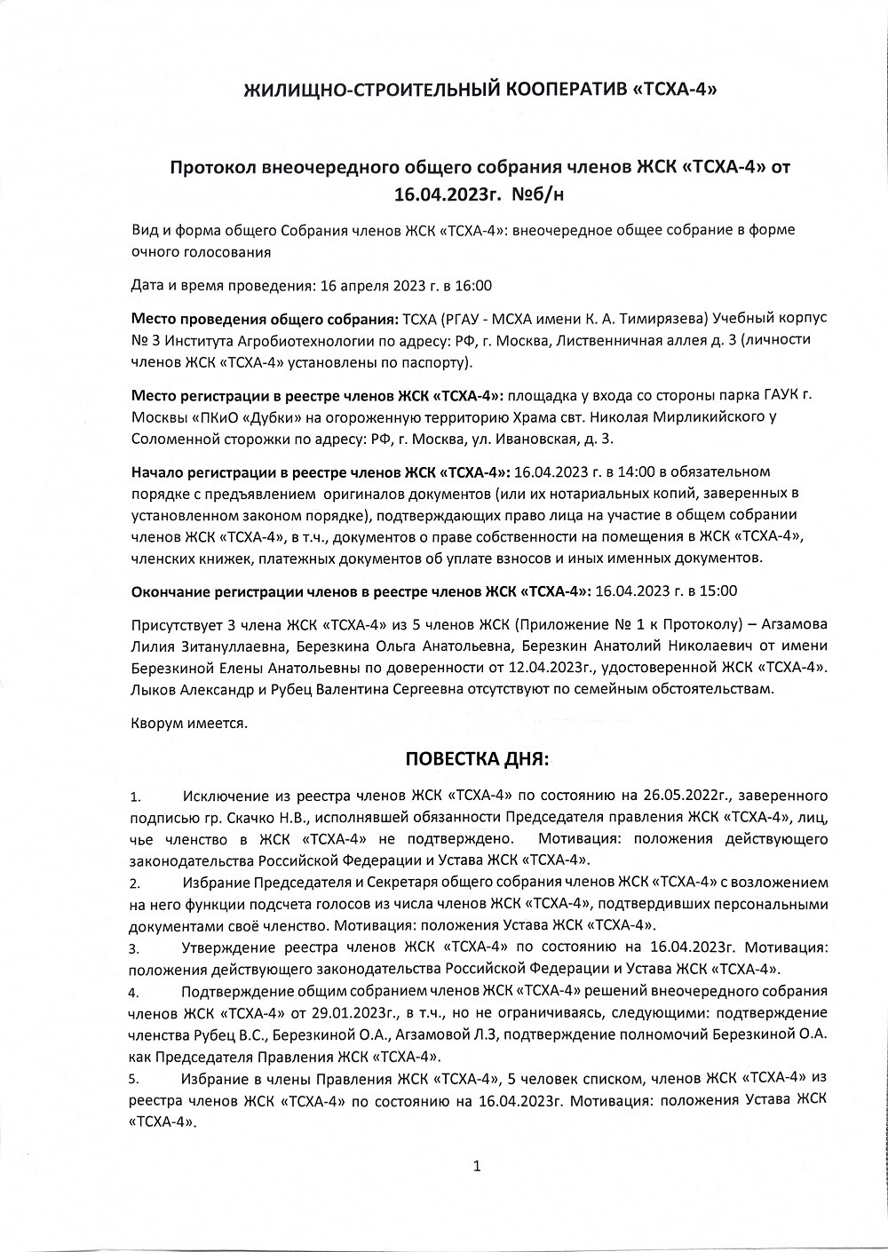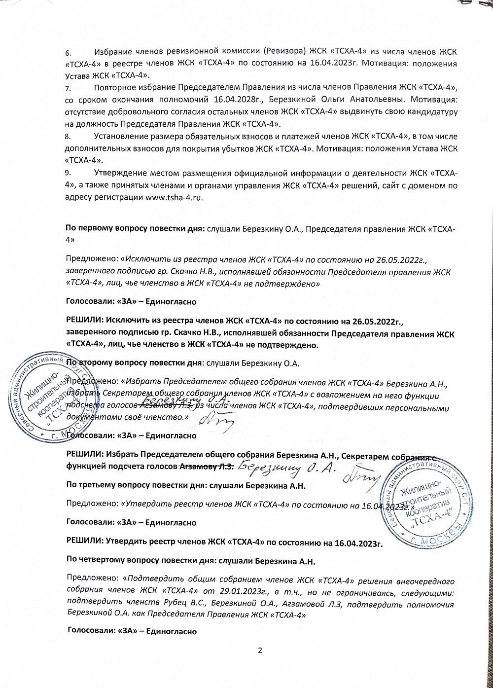 Исковое заявление ЖСК "ТСХА-4" от 03.10.2023г. к гр. Скачко Н.В. о признании полномочий отсутствующими